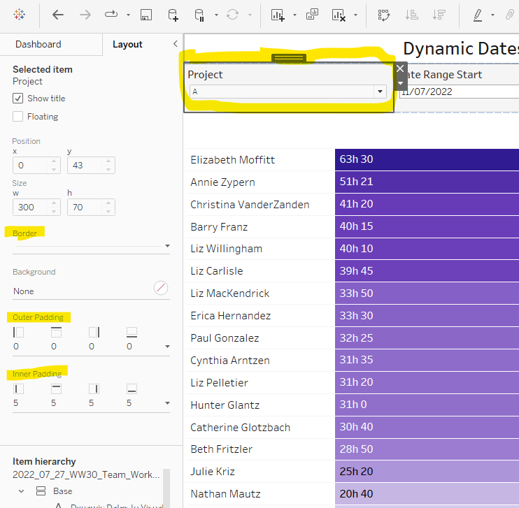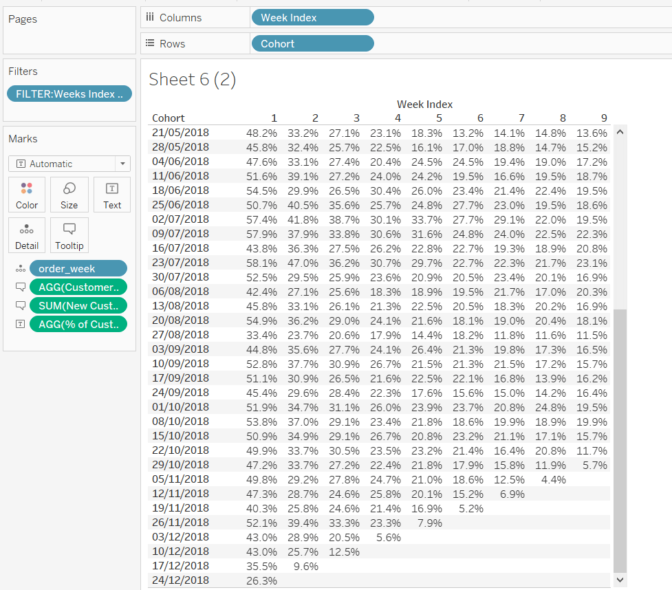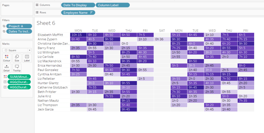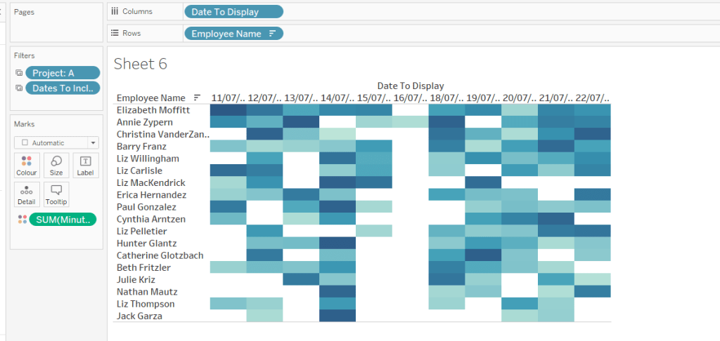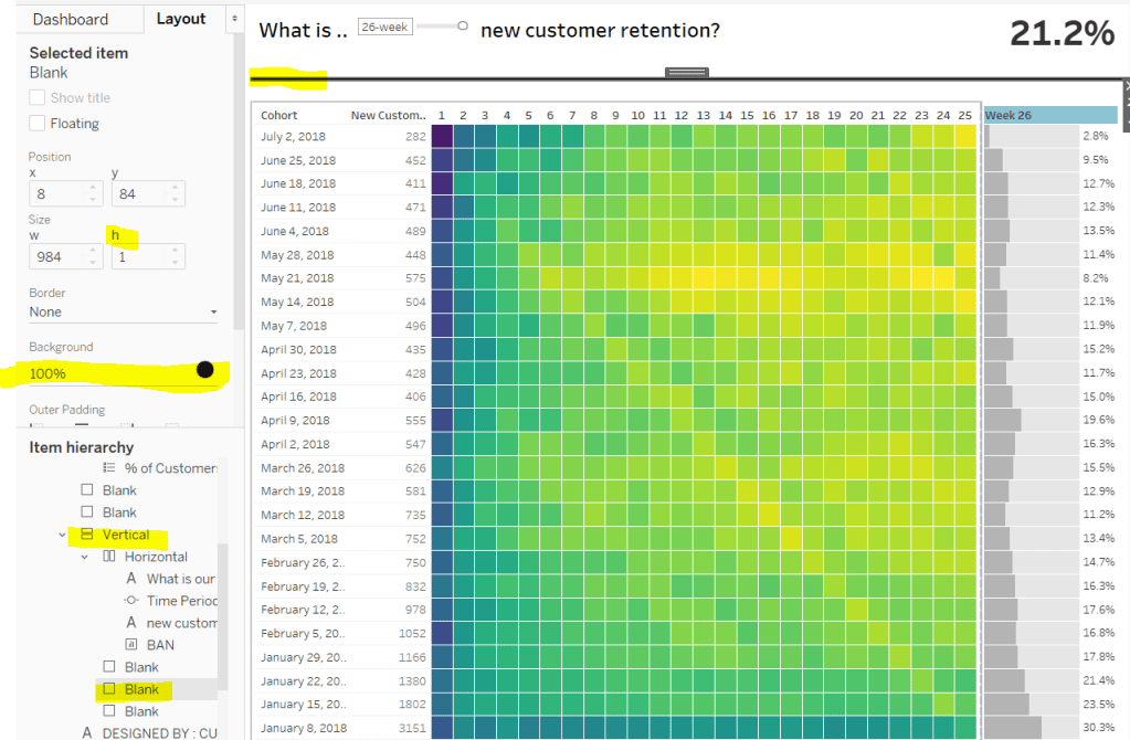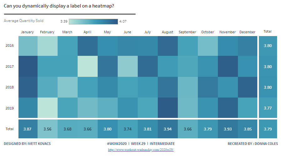 Then add the sheet to an 800 by 800 sized dashboard. You will need to make tweaks to the padding and potentially sizing of the heat map marks again to get the squares to position centrally with white surround. I added inner padding of 60px to the left & right of the chart on the dashboard, to help make the chart itself squarer.