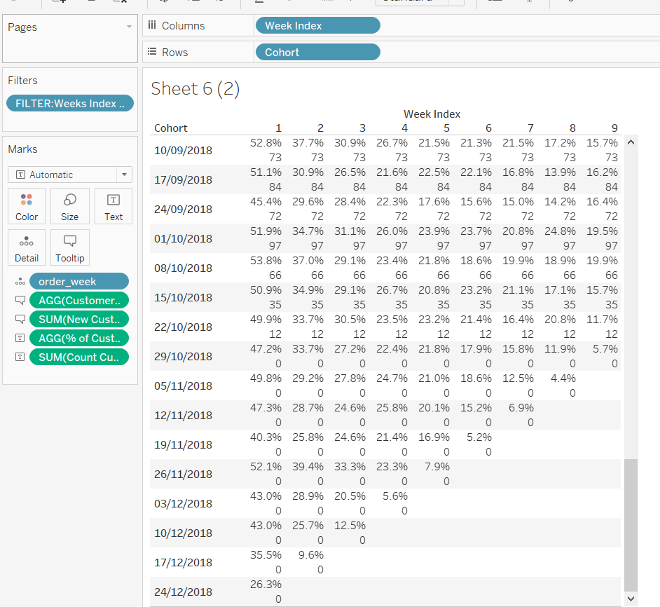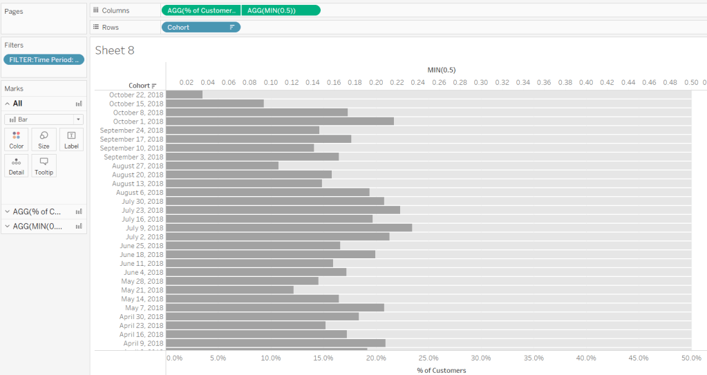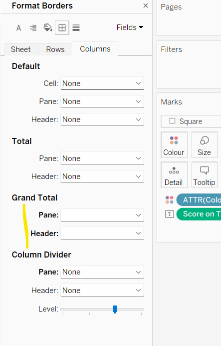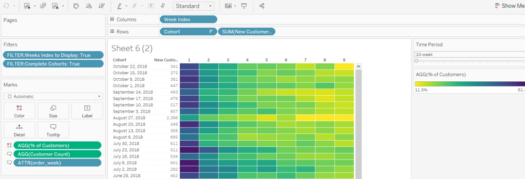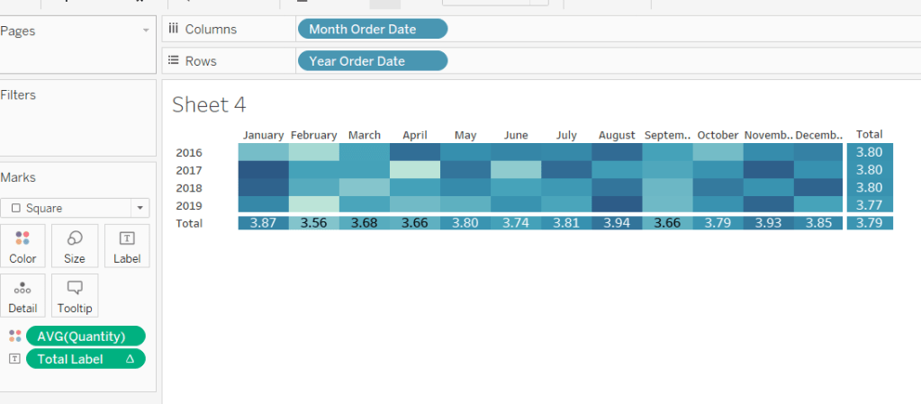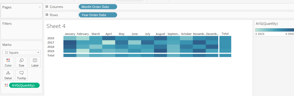 Then add Discount – Heatmap to Rows. This creates a 2nd marks card. Change to be a dimension, and change the mark type to square. Remove Product ID and Product Name from the Detail shelf