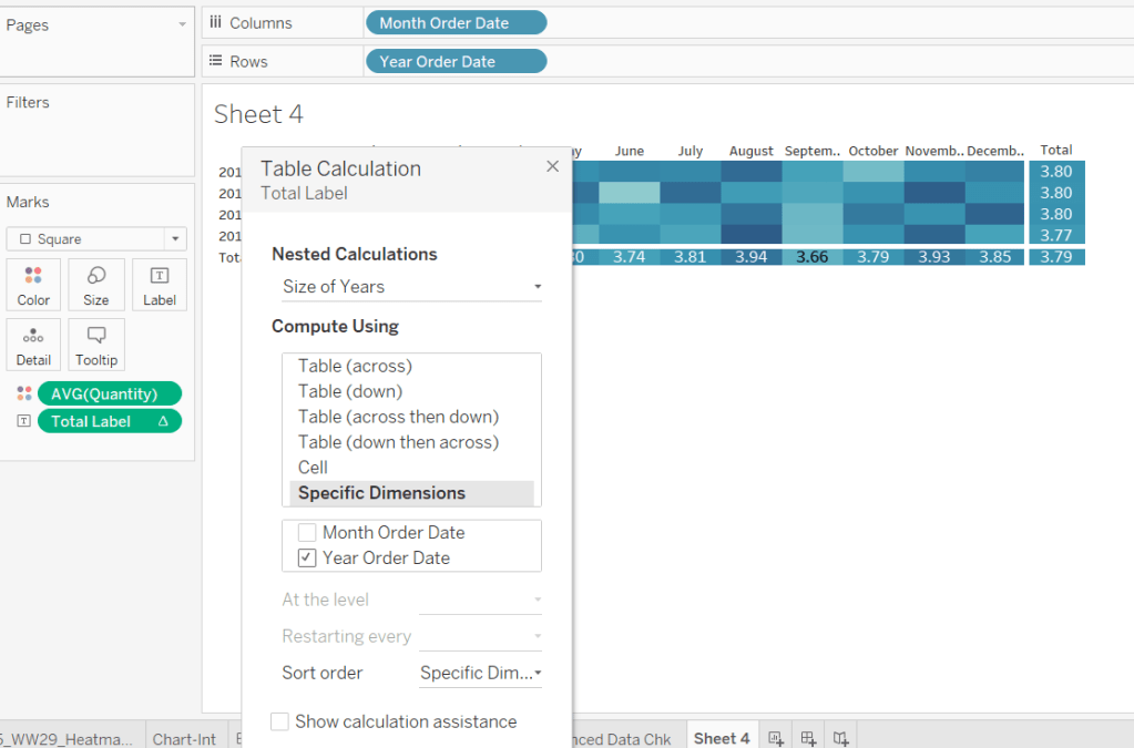 IF ([Table Name]) = ‘Orders’ THEN ([Qty – Scatter]) ELSE ([Qty – Heatmap]) END