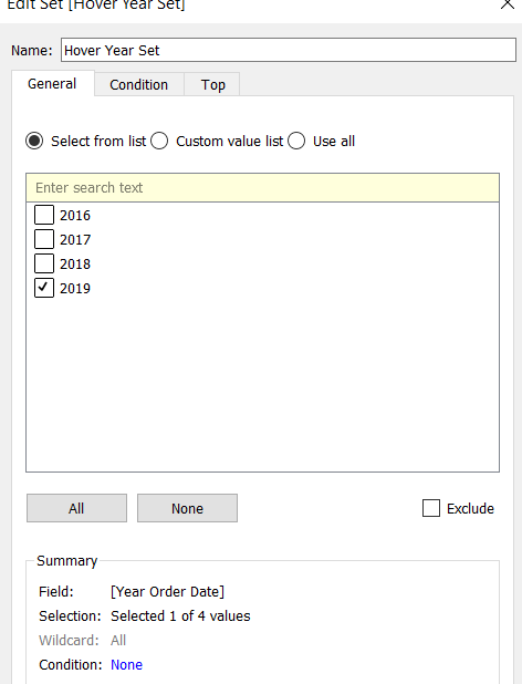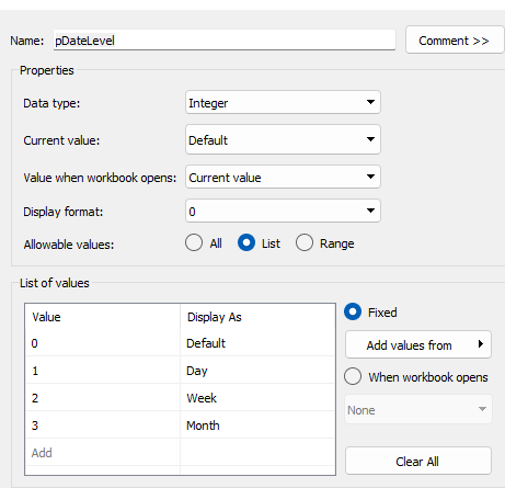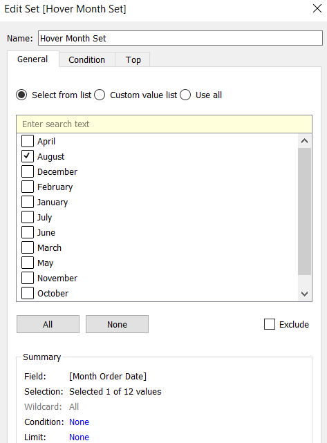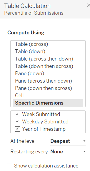 IF [Table Name] = ‘Orders’ THEN {FIXED [Product ID], [Product Name],[Table Name]: AVG([Discount])} END