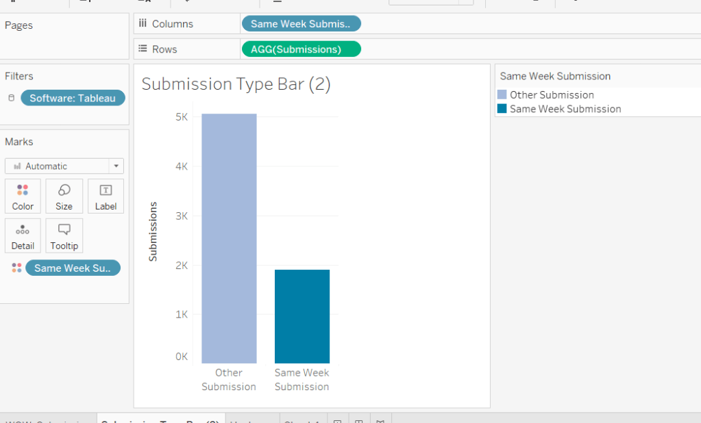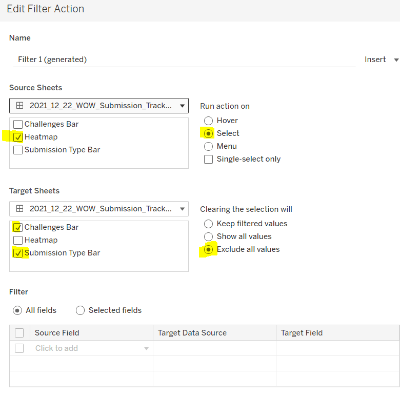 This field contains the value Orders and Orders1 which provides the distinction between the duplicated fields caused by the union. It is this field that will be used to determine which data is used to build the scatter plot and which to build the heat map.