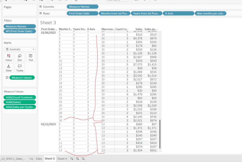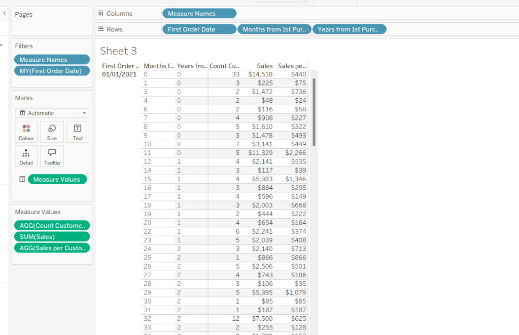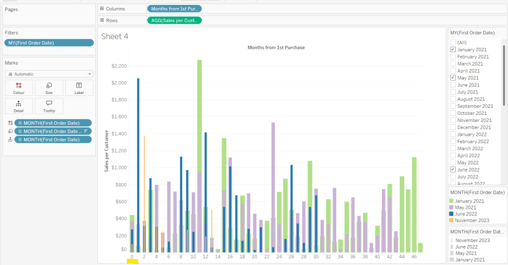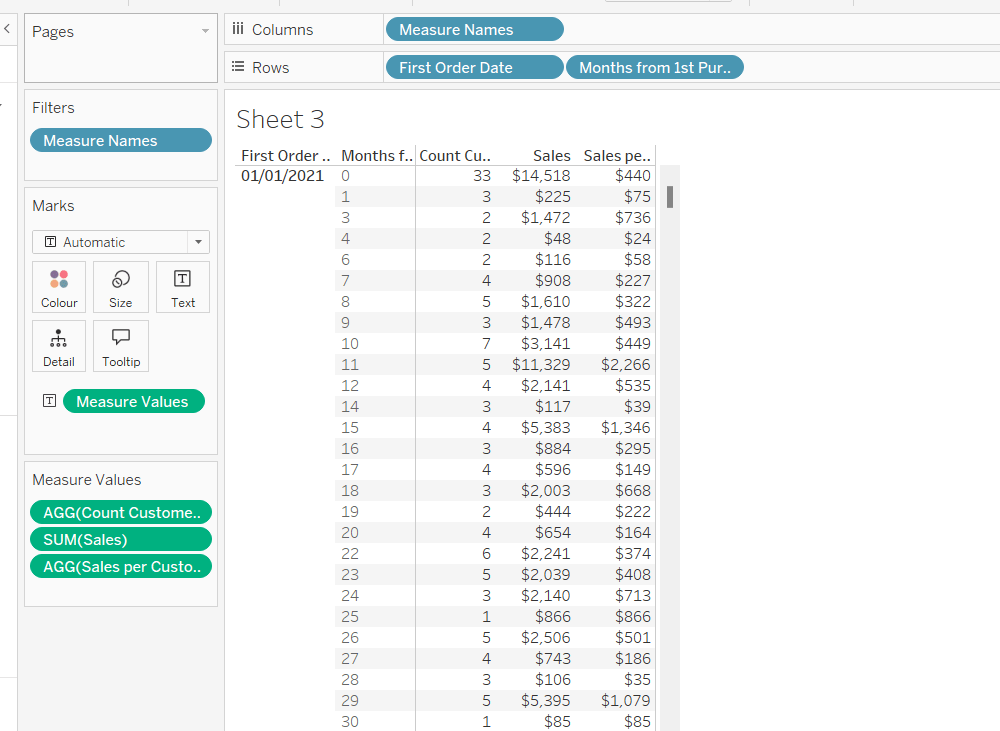Finally tidy up by removing the axis title, adjusting the font of the axis labels (I made them a bit darker), and removing row & column dividers. Name the sheet Order Date or similar.