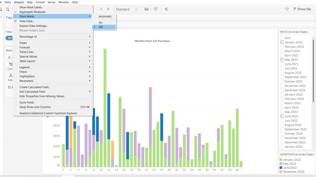 Duplicate the Order Date chart and then click the option in the menu to swap axis so we have a horizontal bar chart.