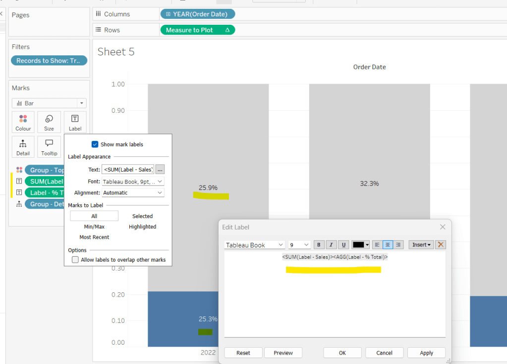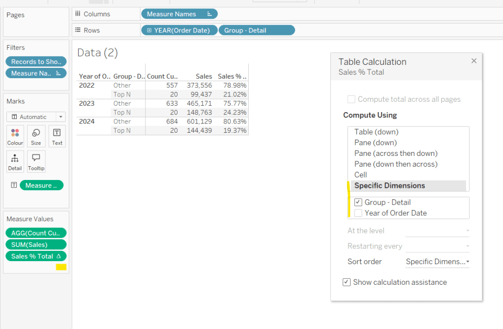 WHEN ‘Order Date’ THEN STR(YEAR([Order Date]))