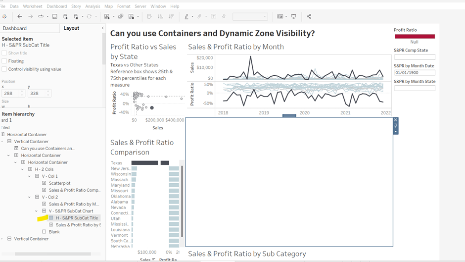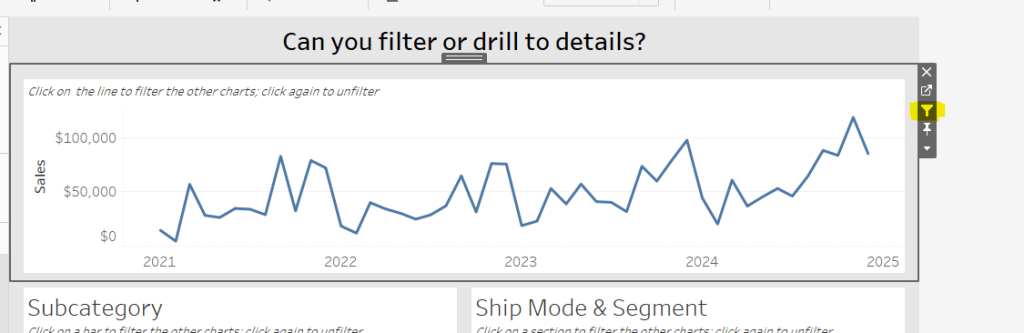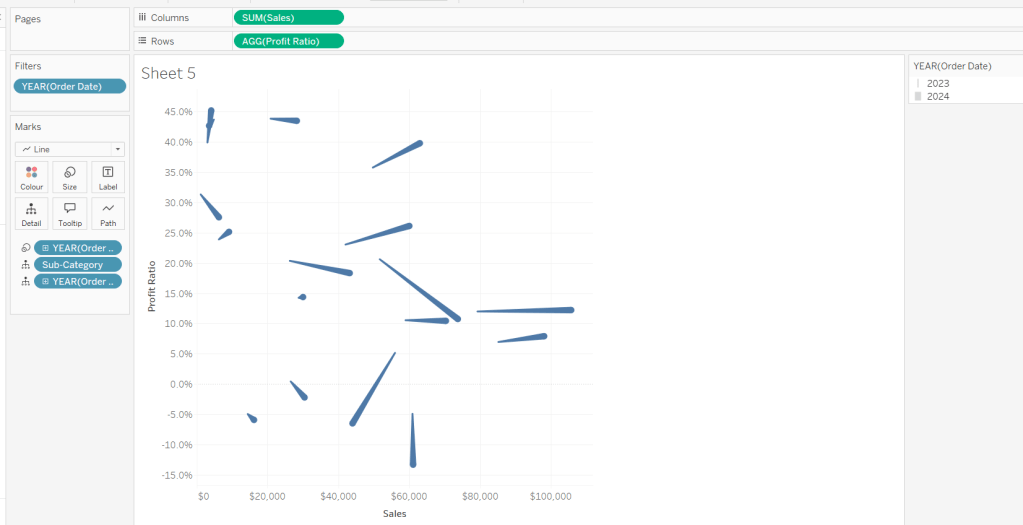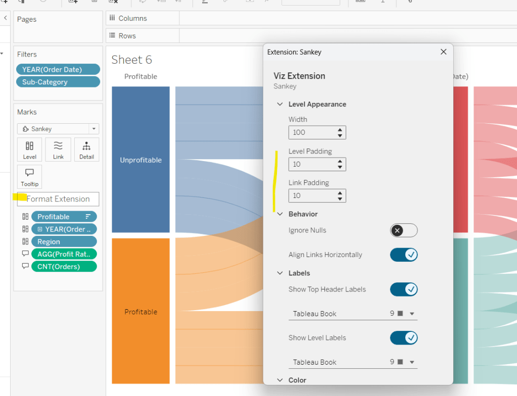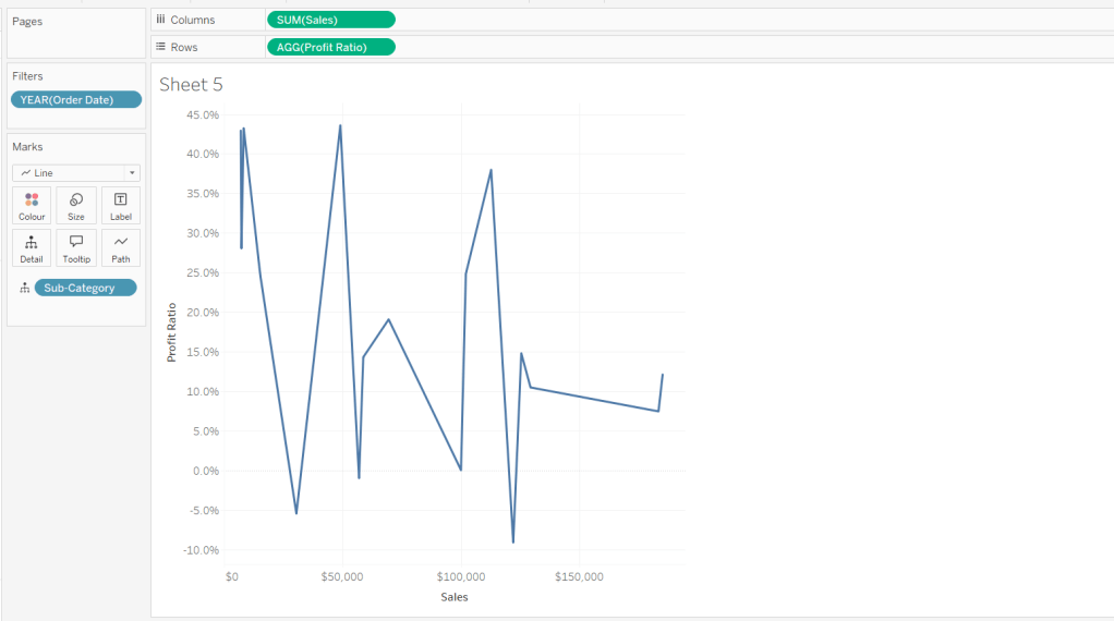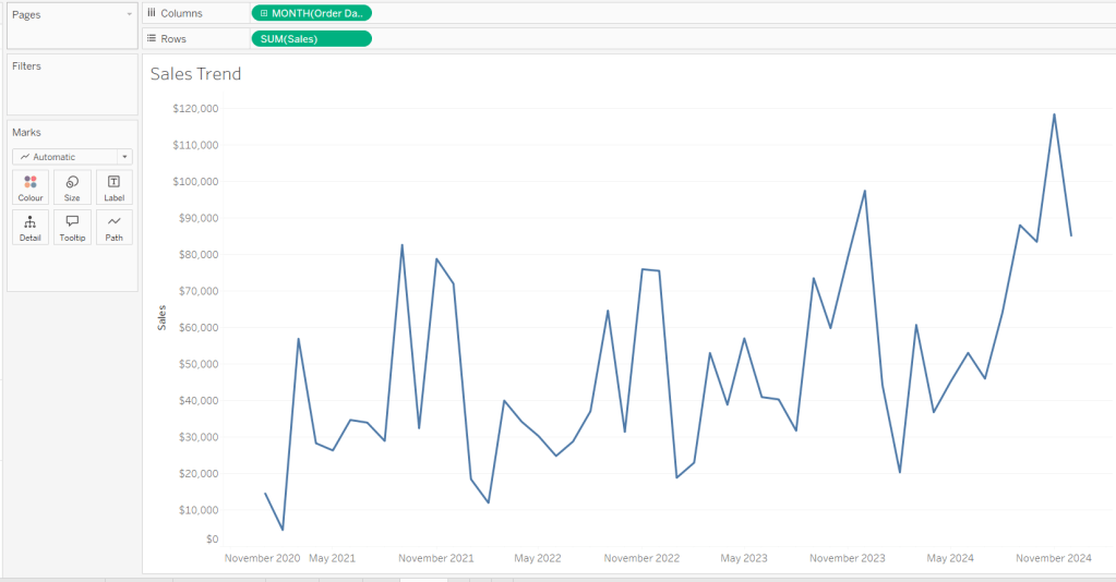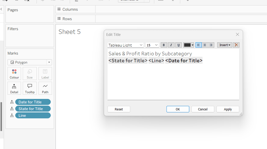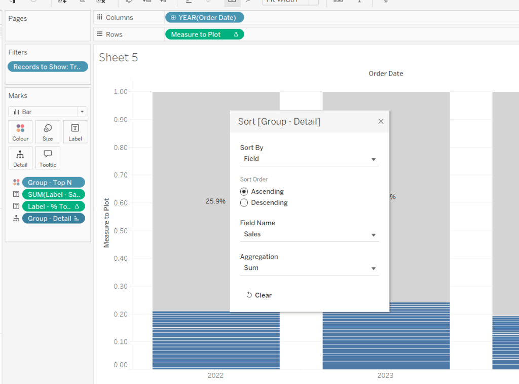 We also need to ‘fake’ the title to be part of the chart itself (so it’s clickable). Double click into the Columns and manually type ‘Sales by Order Date’ and position the pill created before Order Date.