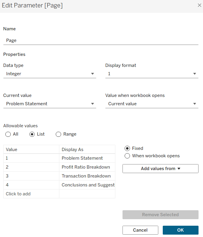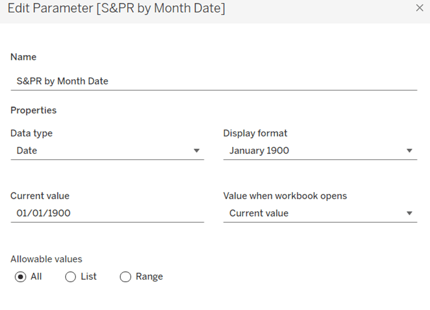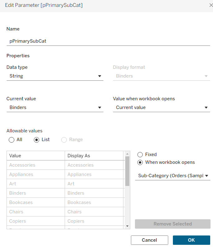 string parameter defaulted to Order Date, listing the 4 options as below