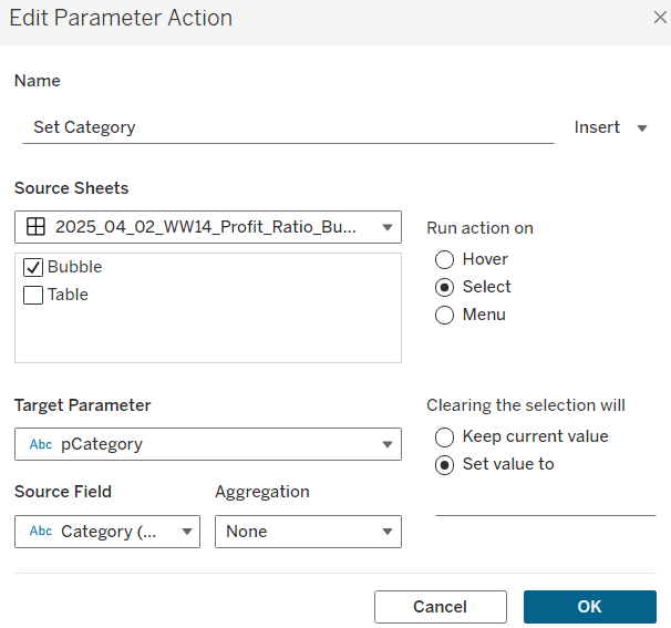 Parameter Action : Set Category Param