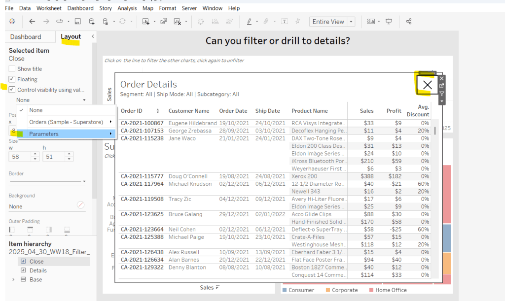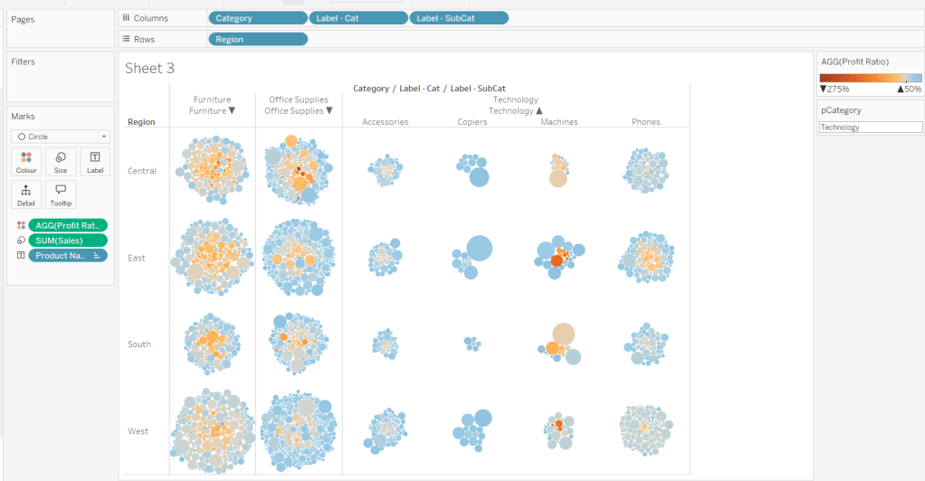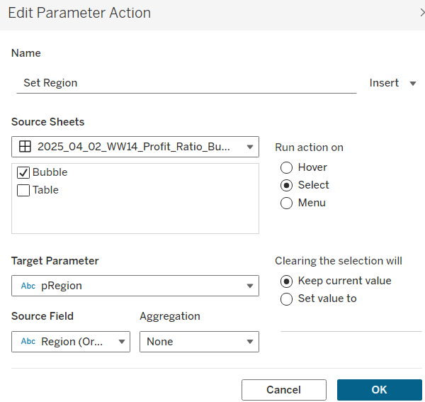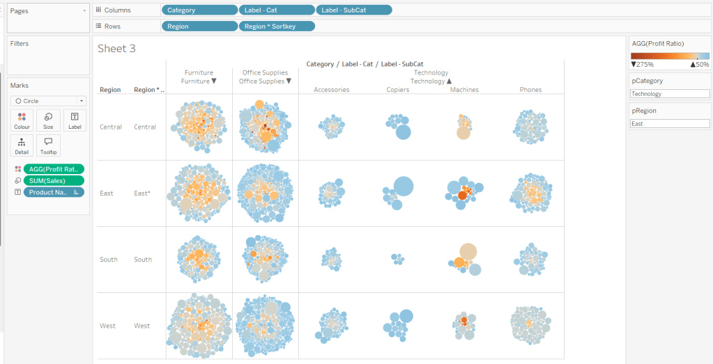 and add this to the Detail shelf instead of the param Order Date field. Name the sheet Region or similar