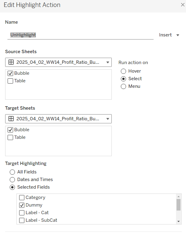 Filter Action: Deselect Category Title