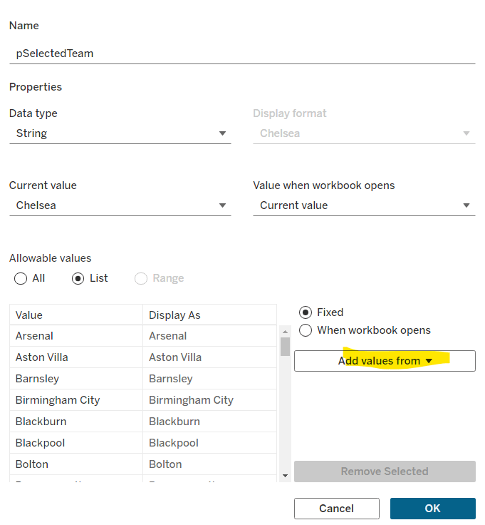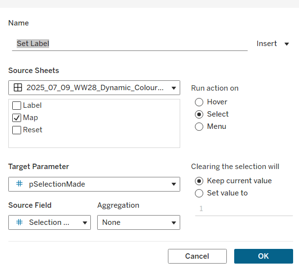 We then need a field that uses this parameter to define the actual dimension we’ll colour by