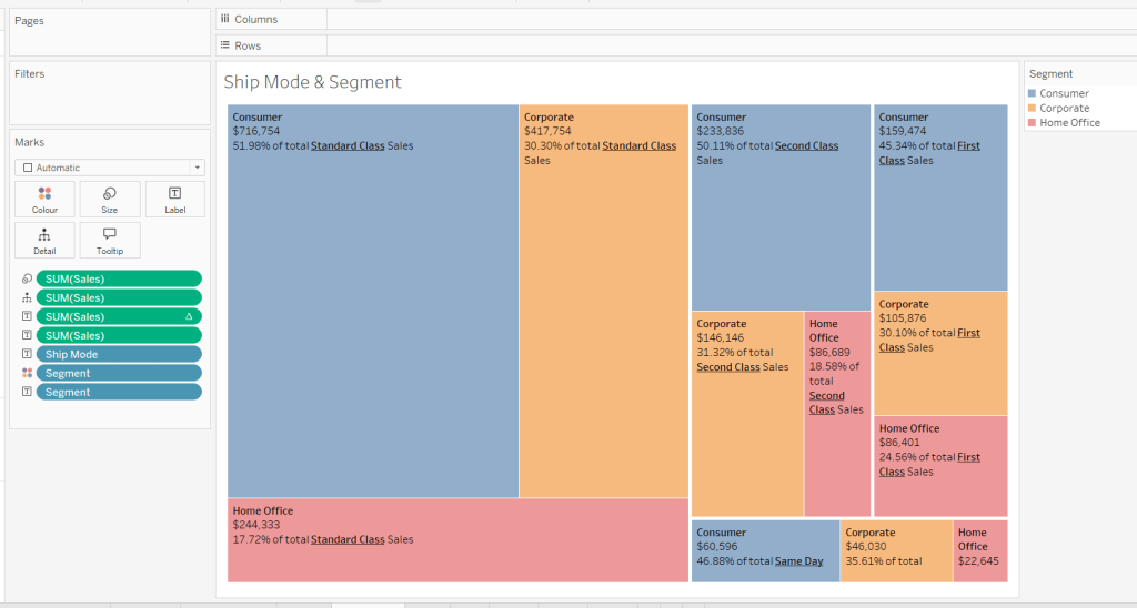 Repeat as above, this time setting the ‘title’ to Sales by Segment and a new field