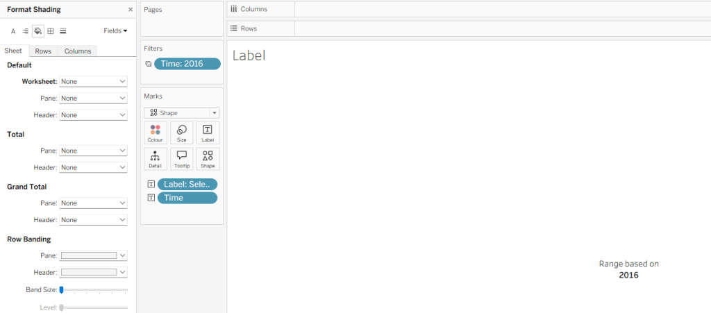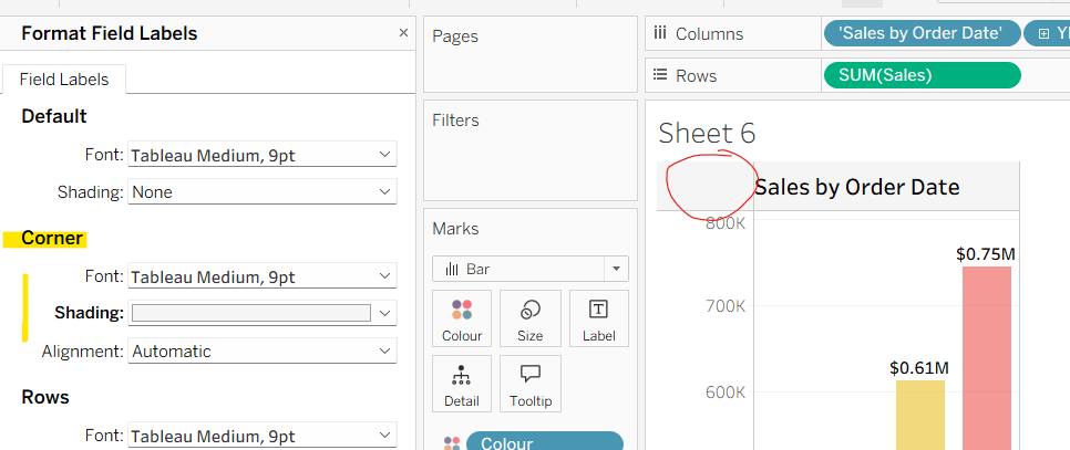 Then right click on the corner whitespace next to the heading just created, and format. Apply a light grey shading to the corner too.