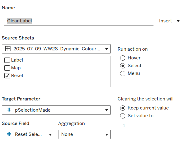 Filter Action: Deselect Region Title