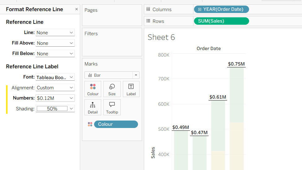 Format the reference line to format the displayed number in $M and bold font, and align top middle.