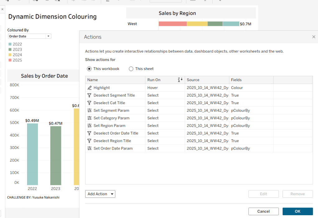 For this week’s challenge, Yusuke asked us to provide a solution to allow charts to be coloured by different dimension, but he sprinkled a few extras in just for good measure 🙂