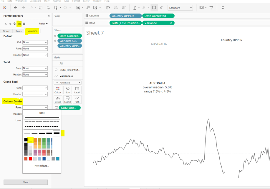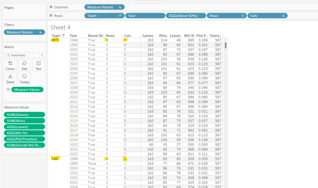 However in this instance, using the calculations referenced in the blog doesn’t meet the requirement of ensuring there are more columns than rows. This was an area that got me stumped. As a result, I finished the viz with a version that utilises my ‘go to’ calculations (published here), before then looking at Jack’s solution to get the calculations, which are