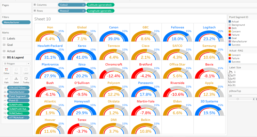 IF [Point Segment ID] = ‘Manufacturer’ AND [PR % of Gauge]>[Gauge Success Pct of Gauge] THEN [Manufacturer] END